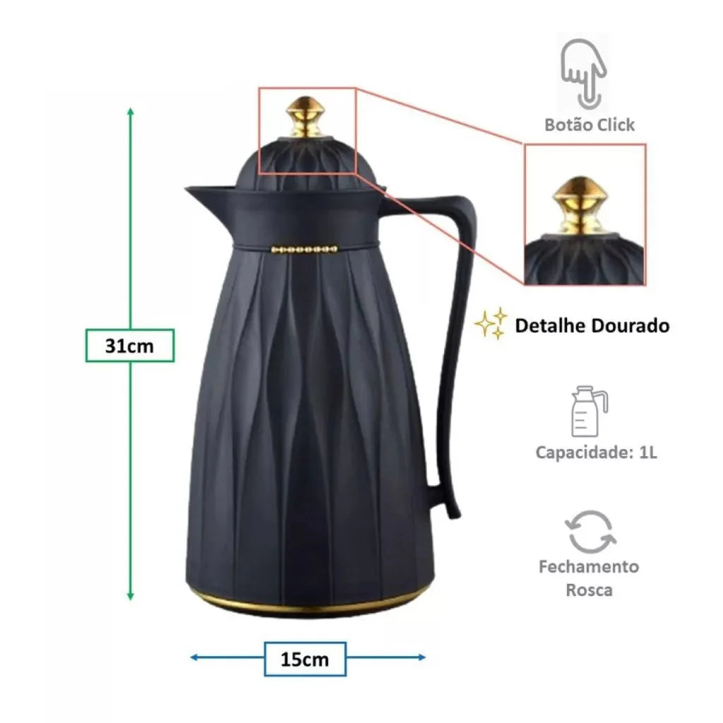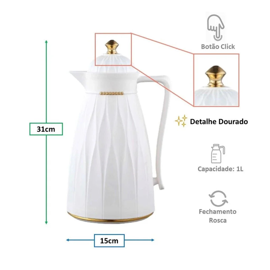 A Garrafa Térmica de Café 1L foi criada para quem não abre mão de praticidade sem perder a moda. Com design sofisticado e detalhes em dourado, ela transforma a hora do café em um verdadeiro ritual de charme
