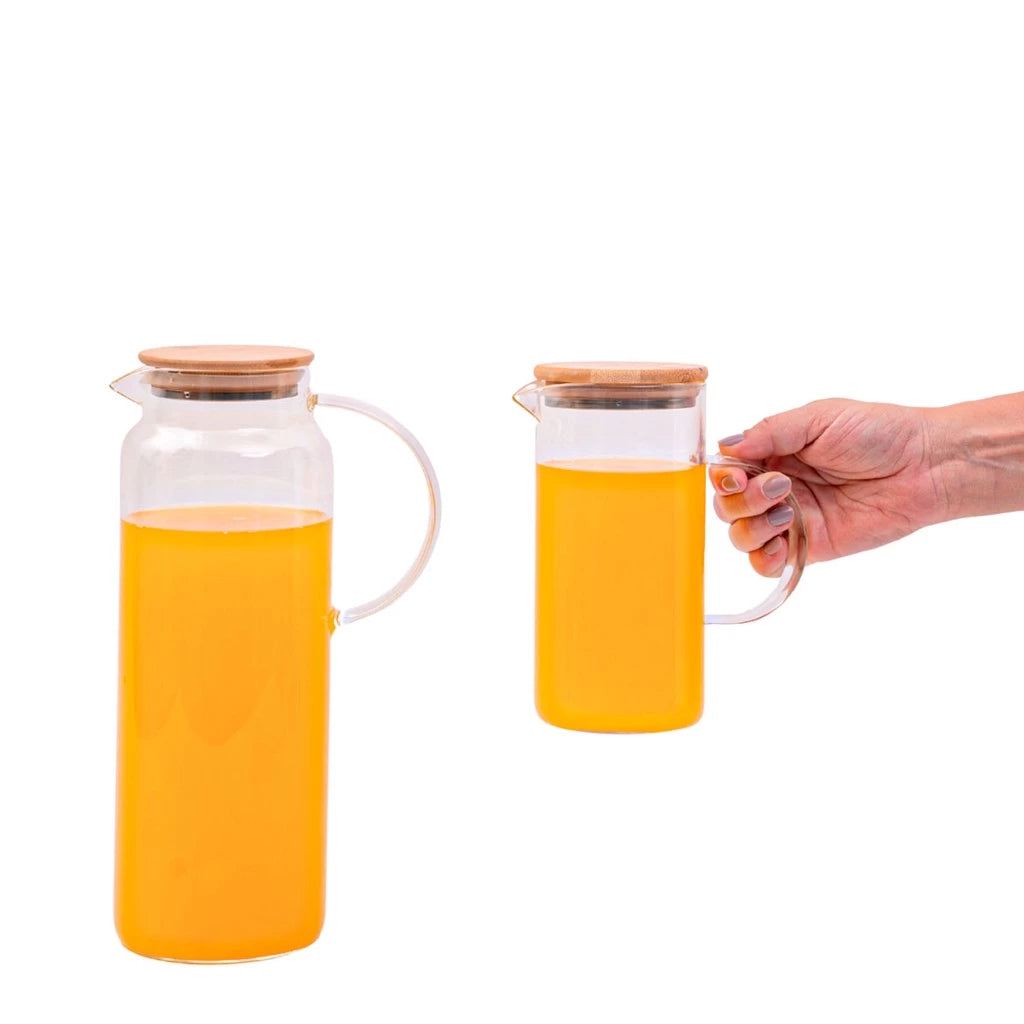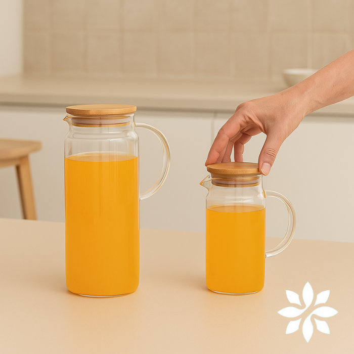 Transforme suas refeições e encontros em casa com um toque de sofisticação. O Kit com 2 Jarras de Vidro Borossilicato com Tampa de Bambu traz um design minimalista e natural, perfeito para quem aprecia beleza e funcionalidade no dia a dia. Feitas com vidro borossilicato, essas jarras são resistentes a choques térmicos, permitindo servir bebidas geladas ou quentes sem preocupações.