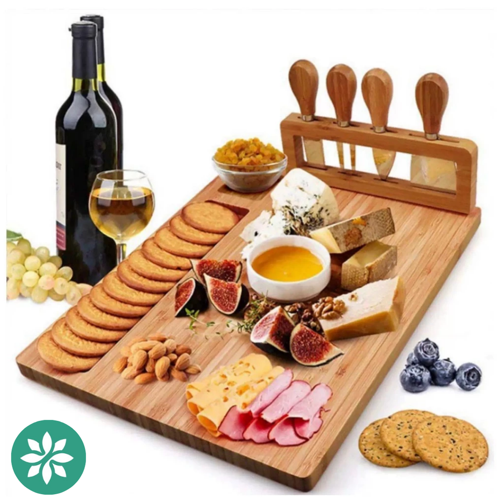 Com superfície ampla e compartimentos pensados para acomodar diversos itens, essa tábua é perfeita para montar uma tábua de frios completa com queijos variados, presuntos, castanhas, frutas secas e molhos. Além da funcionalidade, ela também se destaca como elemento decorativo em festas, piqueniques, jantares românticos ou presentes criativos.