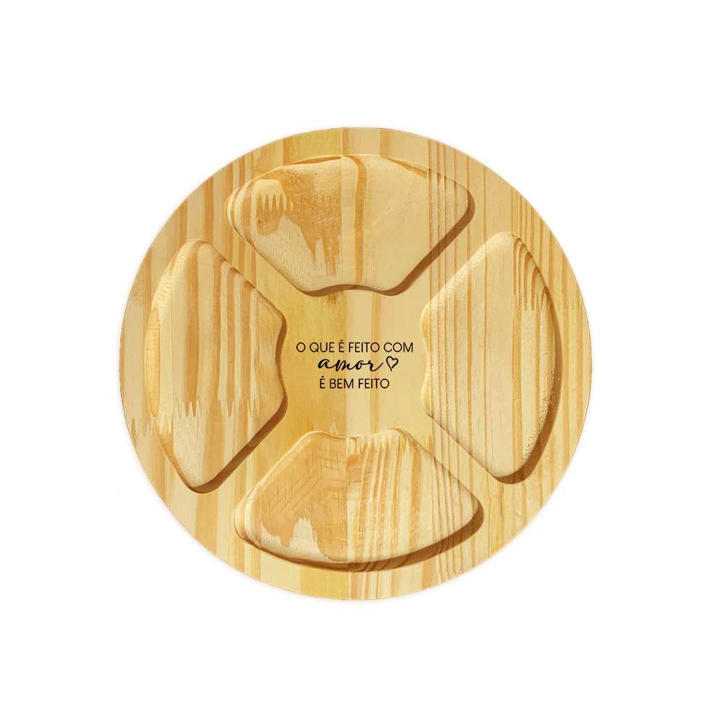 A Petisqueira Personalizada com Frases – 4 Divisórias em Madeira Pinus é a combinação perfeita entre beleza rústica e praticidade. Com um acabamento natural que valoriza a textura da madeira e frases divertidas gravadas a laser, ela transforma qualquer reunião em um momento descontraído.