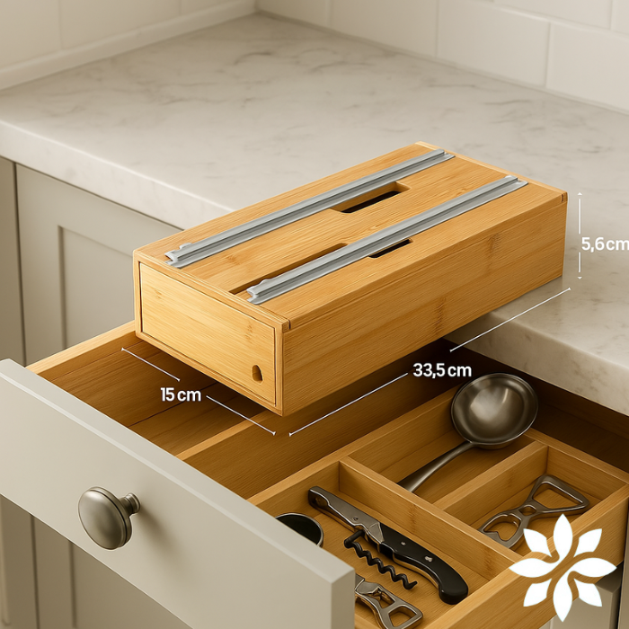 Transforme a praticidade da sua cozinha com o Organizador de Rolos para Gaveta em Bambu, ideal para armazenar e acessar facilmente seus rolos de papel alumínio, papel filme e até papel manteiga. Com design inteligente para gavetas, ele mantém os itens organizados, evita desperdícios e agiliza o preparo das refeições do dia a dia.